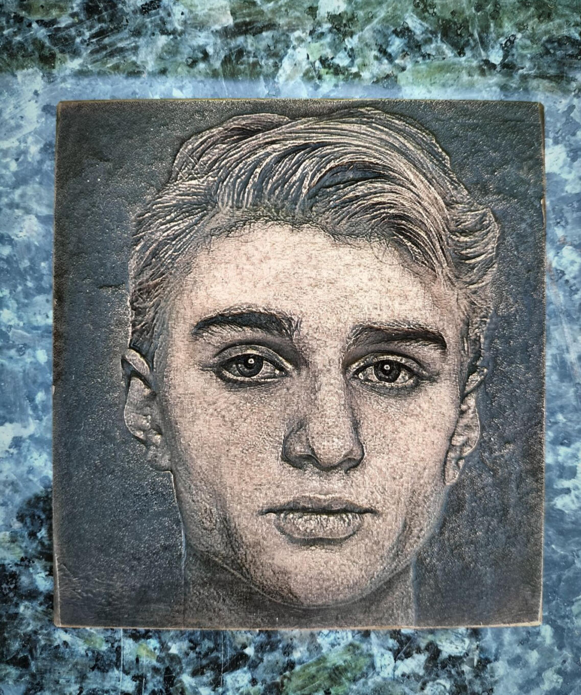 Portrait of young man in 2mm bronze relief.