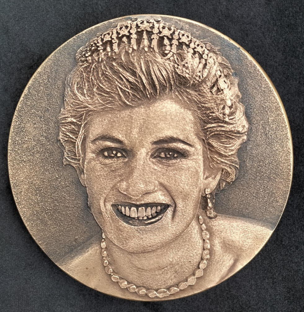 Portrait of Diana in 2mm bronze relief.